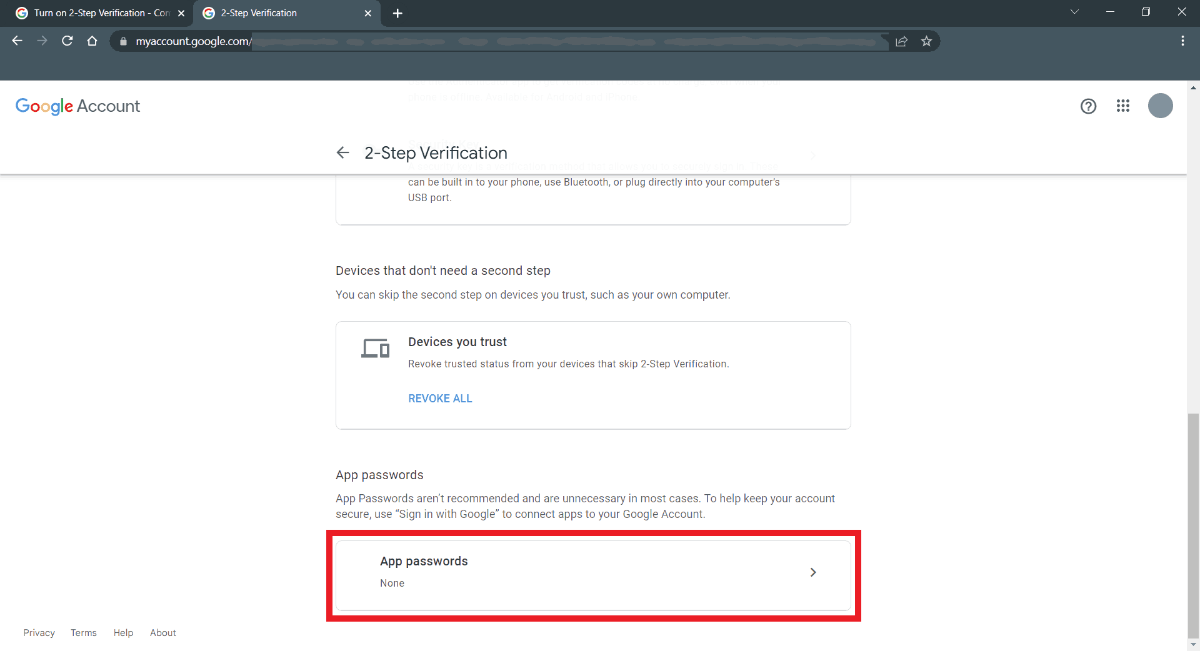 If you are using a different email provider, you can search for instructions on how to generate an app password.