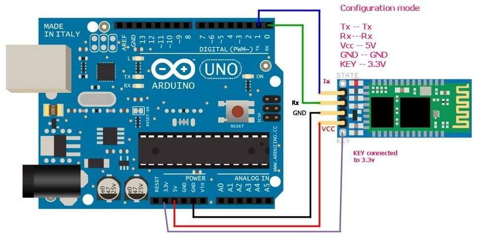 - Bluetooth Module (HC-05) pins like Tx, Rx are connected to Rx, Tx pins of Arduino UNO. And GND, VCC pins are connected to GND and VCC pins of UNO.