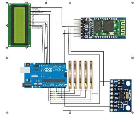 - Accelerometer pins like SDA is connected to A4 pin of UNO and SCL pin of Accelerometer is connected to A5 pin of UNO.