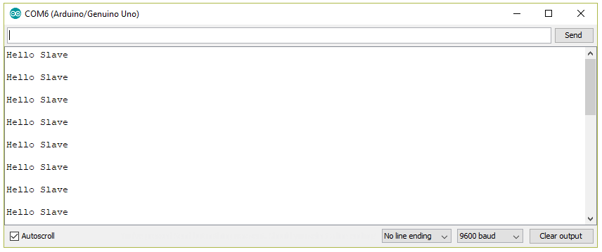 Here, we will transfer the "Hello Slave\n" string from MBED board to the Arduino board using SPI communication protocol.