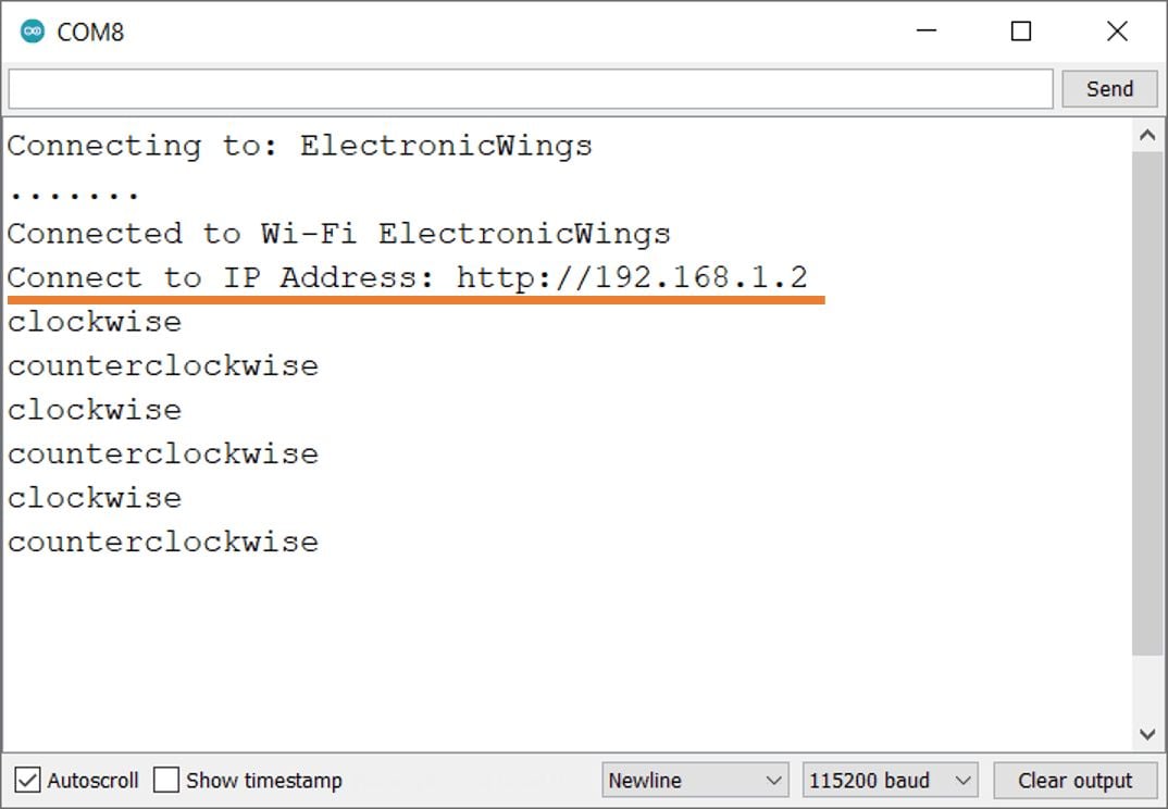 while(WiFi.waitForConnectResult() != WL_CONNECTED){Serial.print(".");}After successfully connecting to the server print the local IP address on the serial window.