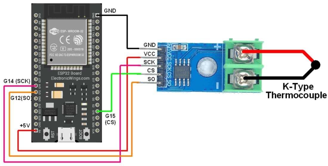 Let’s interface the K-type Thermocouple sensor to ESP32 and display the temperature in degree Celsius and degree Fahrenheit on the web server.