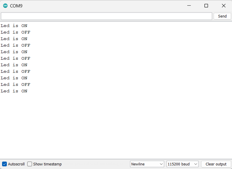 If the LED is currently off (LOW), the code sets the ledstate variable to HIGH to turn it on.